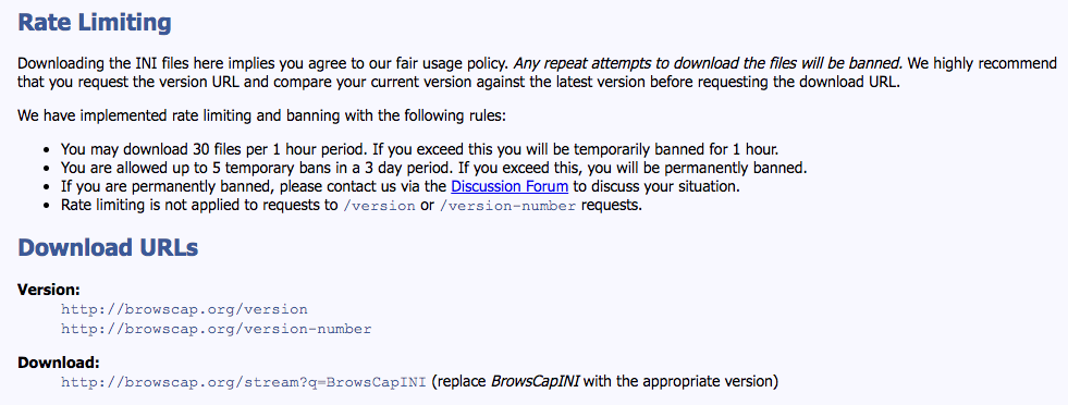 他有在網頁上寫定期更新 browscap.ini 的原則
